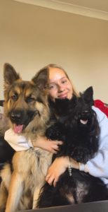 Hi, I’m Charlotte and I love all breeds and sizes of dogs.  Currently I have Zeus, a German Shepherd and Hamish, a Scottish Terrier; and I’m hoping to get a Corgi soon too!   Having grown up with dogs, I knew also that I wanted to work with them.  I gained experience in dog welfare, behaviour and breed groups, first working in kennels, then in dog day care.  I studied and trained in Canine First Aid, Dog Walking & Pet Sitting and I am a Level 3-qualified Dog Groomer.  Caring for dogs is simply the best job!